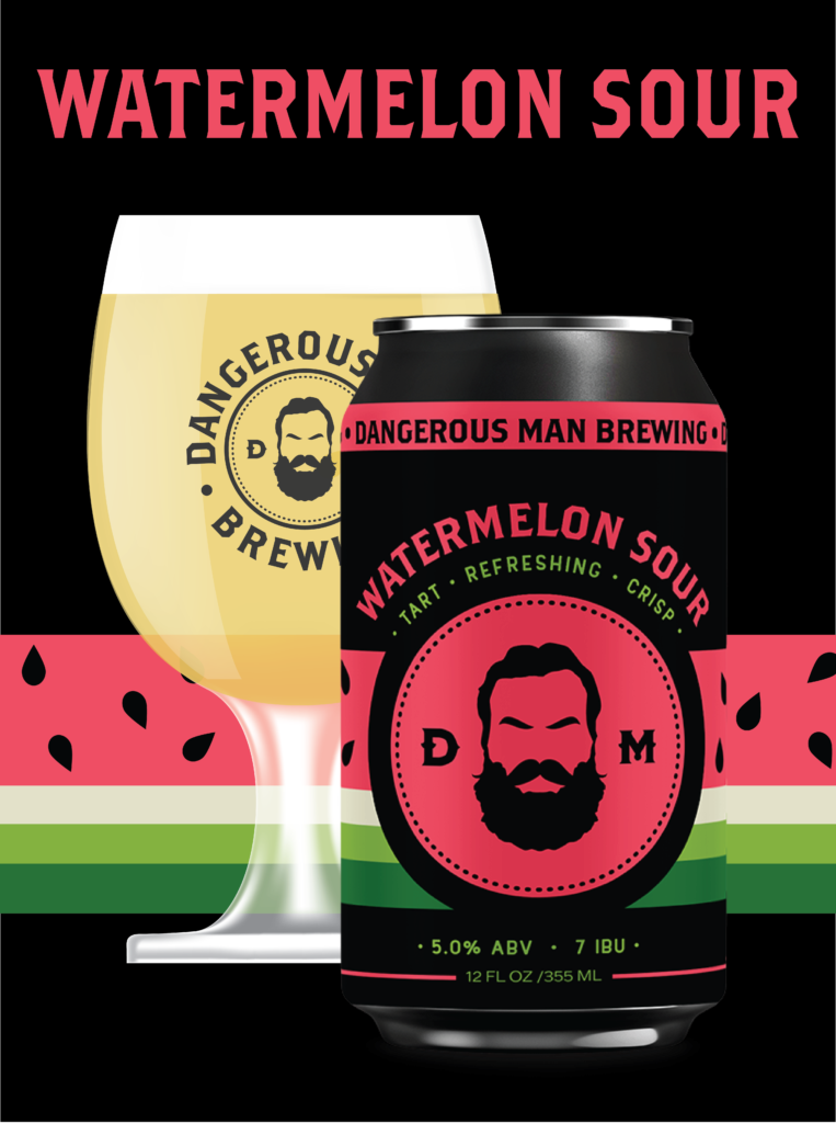 This ultimate summer sour crusher is packed full of fresh watermelon pucker power. a dangerous man favorite! Brewed with fresh watermelon and hopped with Belma hops. enjoy this beauty all summer long while soaking up the sun.