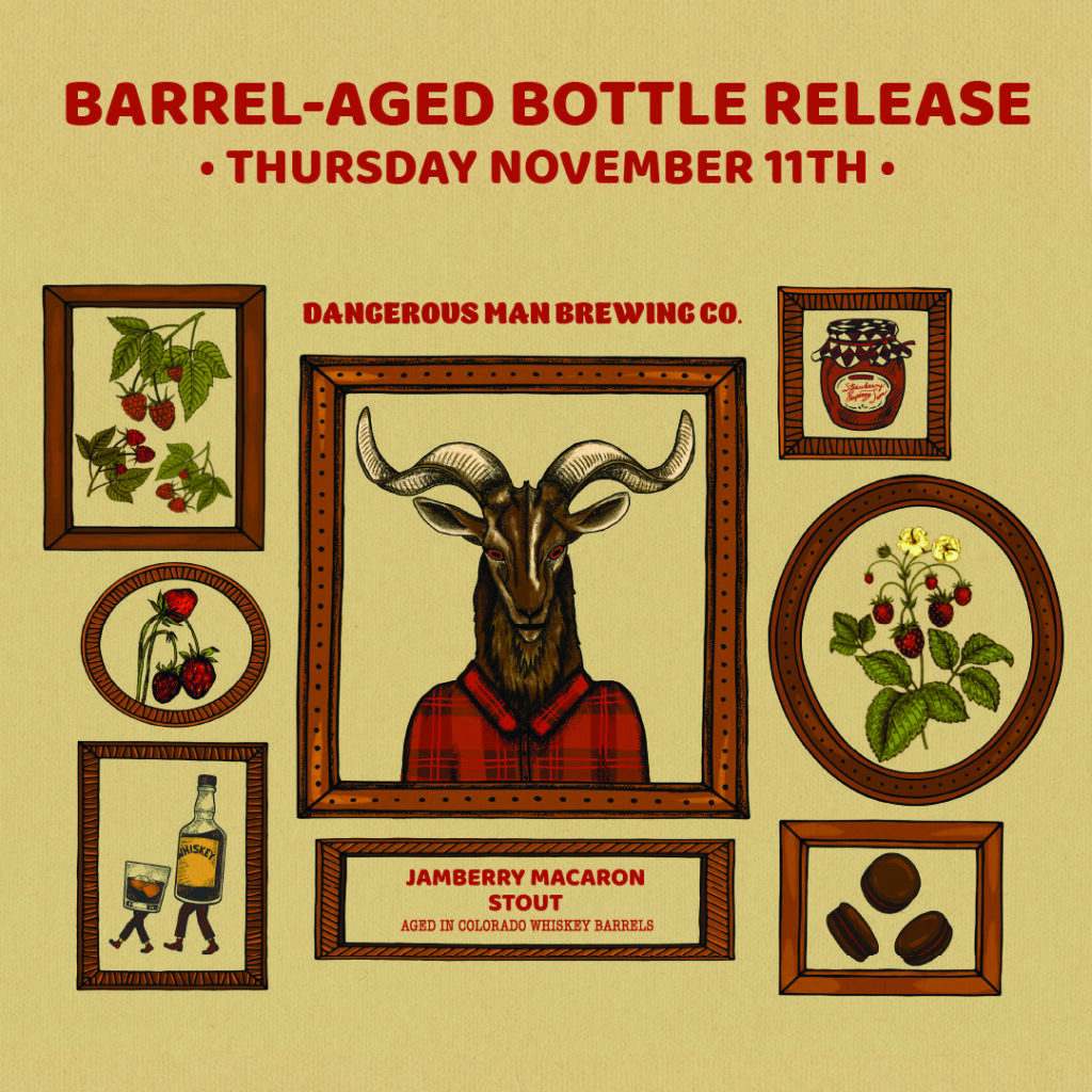 Thursday, November 11th, we will be releasing our third barrel-aged bottle of the season, Jamberry Macaron Stout! Bottles will go on sale in the Growler Shop at 4pm. We have also set aside one keg to be tapped in the Taproom at 4PM!