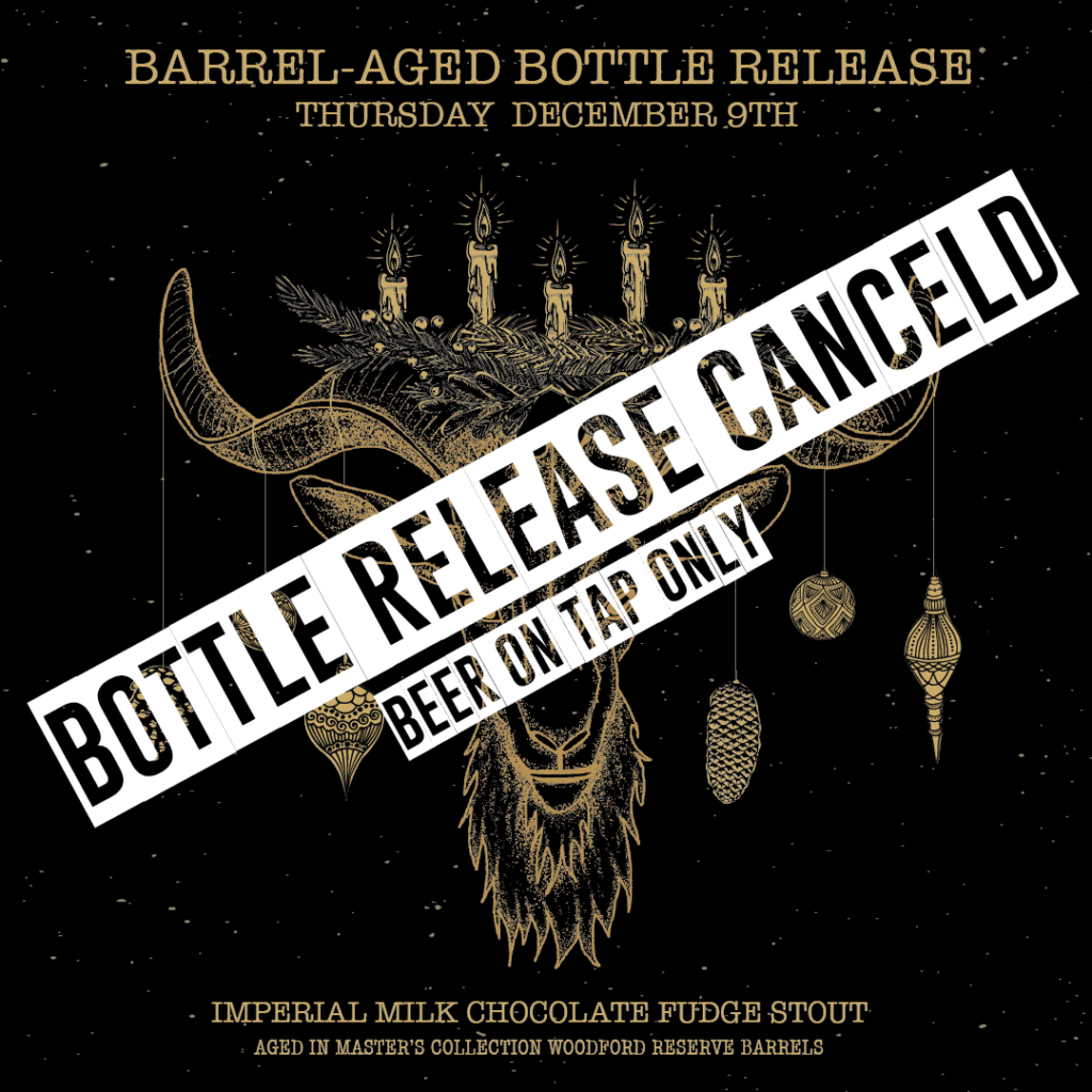 We had the final quality check on our Imperial Chocolate Fudge Stout, and the short answer is it failed our standards. So there will be NO BOTTLES FOR SALE. Needless to say, we are sad and we are sorry to have to relay this.