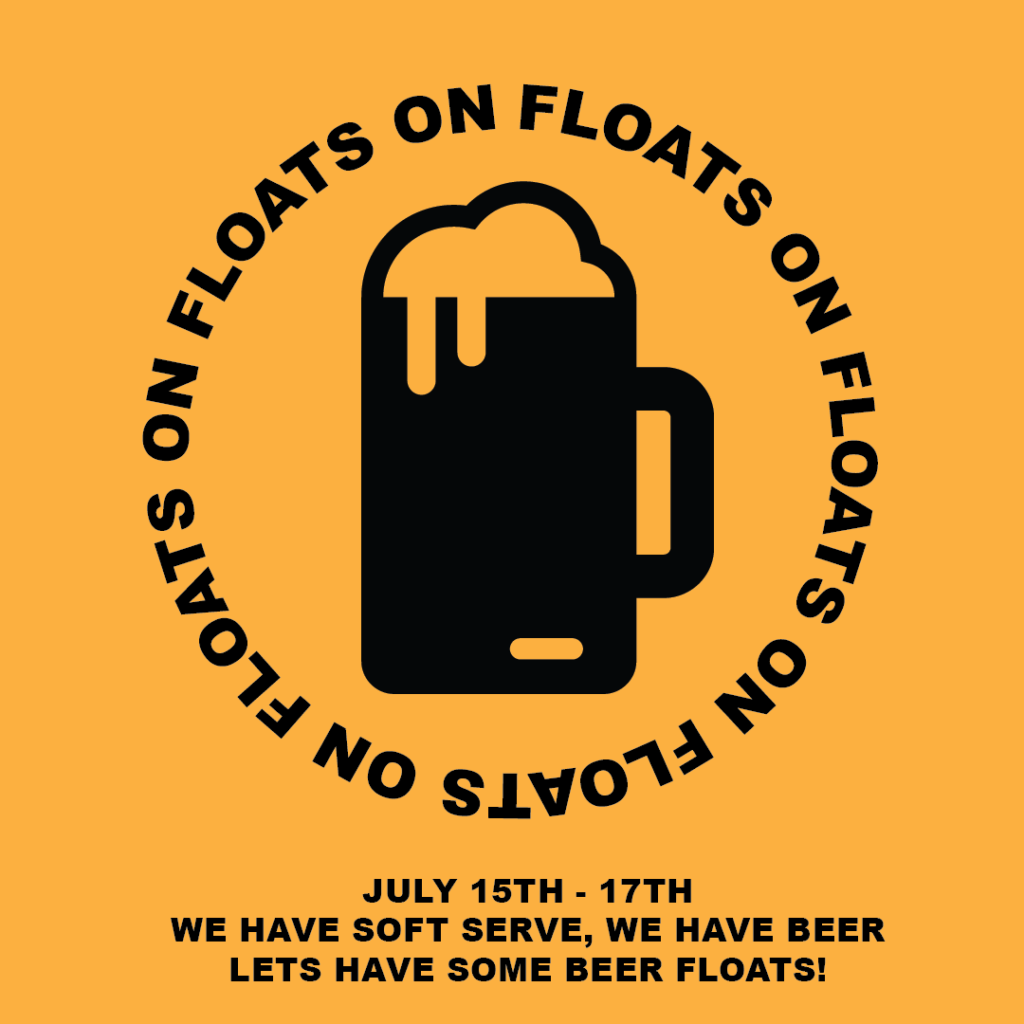 For a little weekend fun and a cool down we offering BEER FLOATS! We have a rocking soft serve machine and we have beer, so why the heck not! Starting on Friday June 15th we will be offering Beer Floats, we will run this special until we are out of soft serve for the weekend!